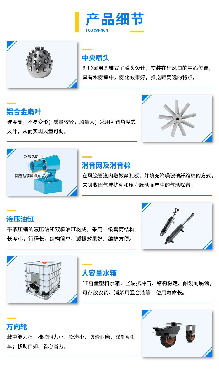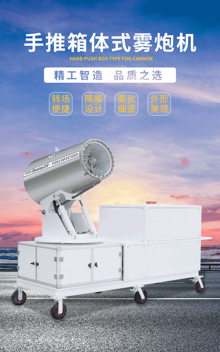 產(chǎn)品特點(diǎn):手推箱體式霧炮機(jī)配備不銹鋼中央噴頭,水霧集中、霧化效果好;搭配1T容量的大型水箱,作業(yè)范圍不再受水源條件困擾,噴霧時(shí)間更持久。