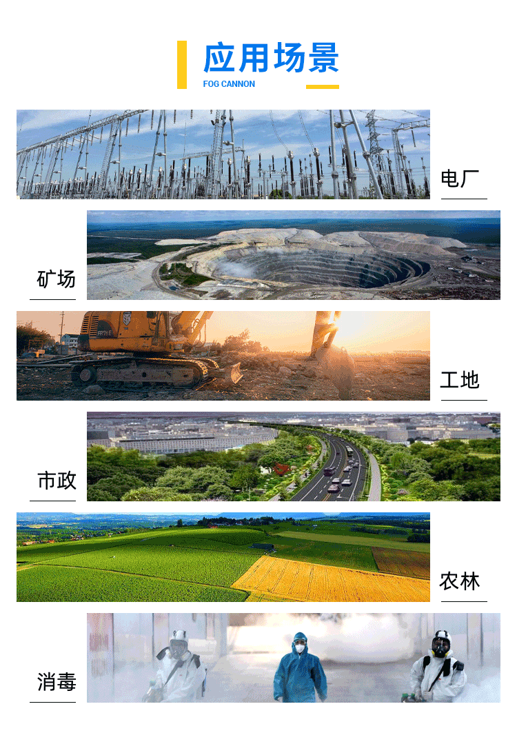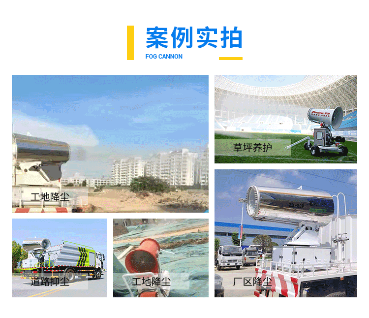 主要用途:建筑垃圾或廢渣廢料機(jī)械作業(yè)局部揚(yáng)塵治理、重型車運(yùn)輸中道路揚(yáng)塵污染治理;飛機(jī)場(chǎng)、高速公路、車站、碼頭、公共場(chǎng)所、運(yùn)動(dòng)場(chǎng)地、炎熱場(chǎng)地等降塵保濕降溫消毒。