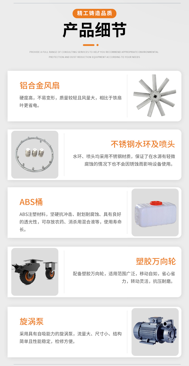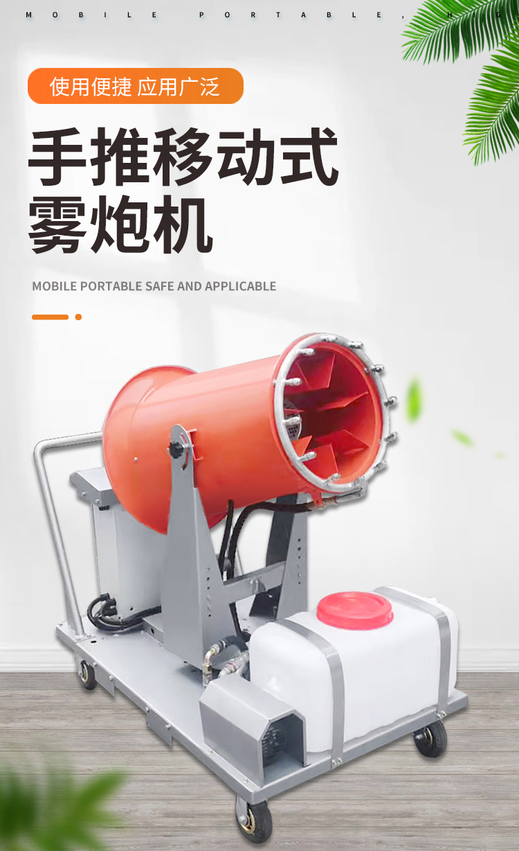 產(chǎn)品特點:手推移動式霧炮機降塵速度快、機結(jié)構(gòu)緊湊、布局合理、移動靈活、構(gòu)造簡單易維護。