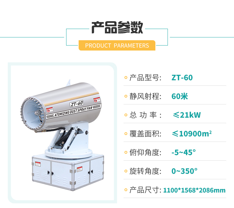 產品特點:60米車載霧炮風機采用鏡面不銹鋼外殼,耐銹蝕易清潔,線性噴霧,射程遠覆蓋范圍廣。
