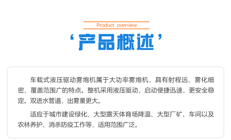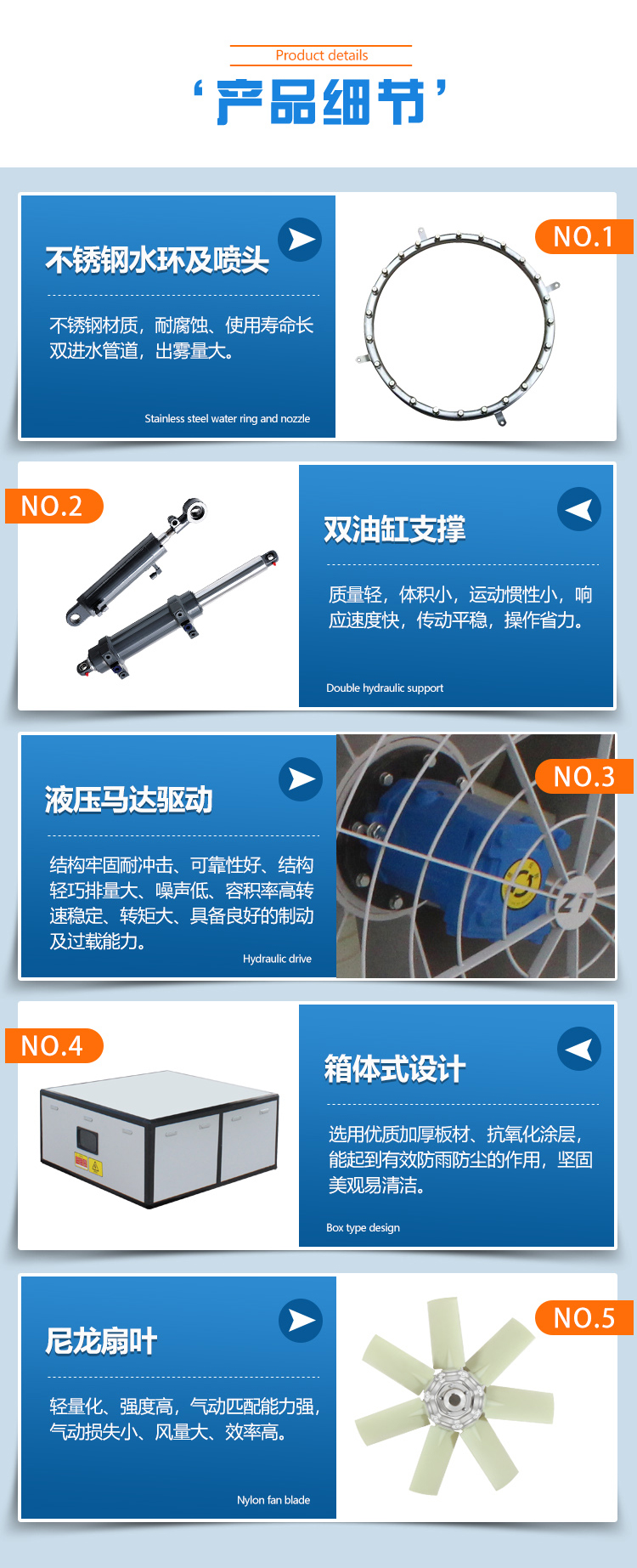 產品特點:120米車載液壓霧炮機屬于大型霧炮設計,具有風送距離遠、霧化覆蓋更廣泛的特點;整機采用液壓驅動,啟動便捷迅速,更安全穩(wěn)定。