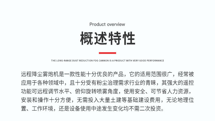 產(chǎn)品特點(diǎn):80米遠(yuǎn)程降塵霧炮機(jī)霧化均勻、覆蓋范圍廣、霧化顆粒細(xì),智能操控模式、運(yùn)行平穩(wěn)使用安全可靠。