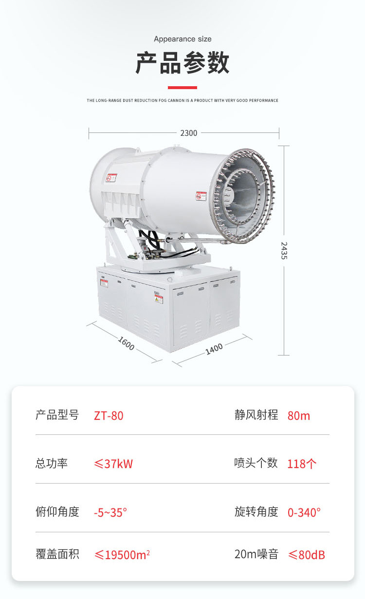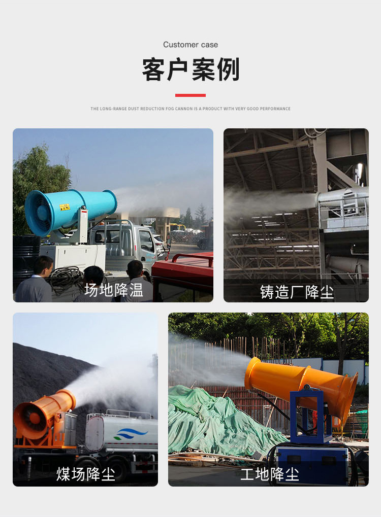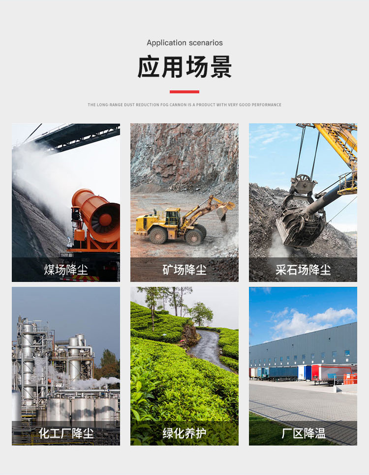 主要用途:用于煤礦場(chǎng)、城市拆遷工地、冶金鋼鐵企業(yè)、采礦區(qū)域、煤化工企業(yè)、水泥廠、火力發(fā)電廠、物料和礦產(chǎn)品露天堆放廠、混凝土處理廠、垃圾堆放場(chǎng)、垃圾焚燒廠、沙廠、干式物料倉庫、露天爆破、重度粉塵區(qū)域。