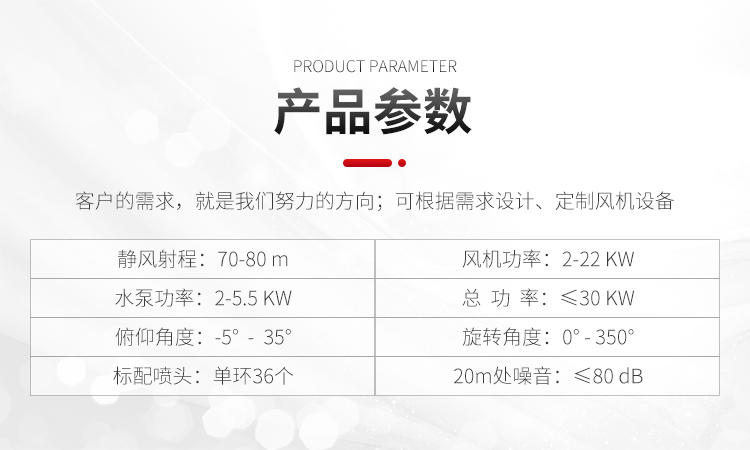 產品特點:70米抑塵霧炮機射程遠、穿透性強、覆蓋范圍廣,水霧顆粒細小、噴灑更加均勻、降塵速度快、工作效率更高。