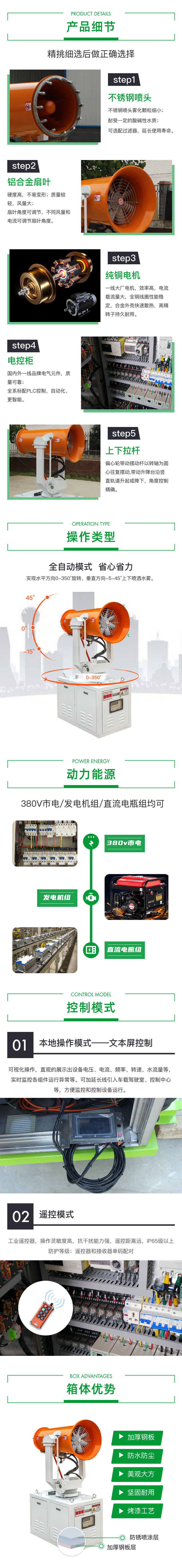產品特點:30米農林霧炮風機射程遠、覆蓋面積大,加速塵埃降沉,抑制塵埃擴散;控制方式靈活,啟動便捷;結構合理、運行穩定、噪音低,作業效率高。