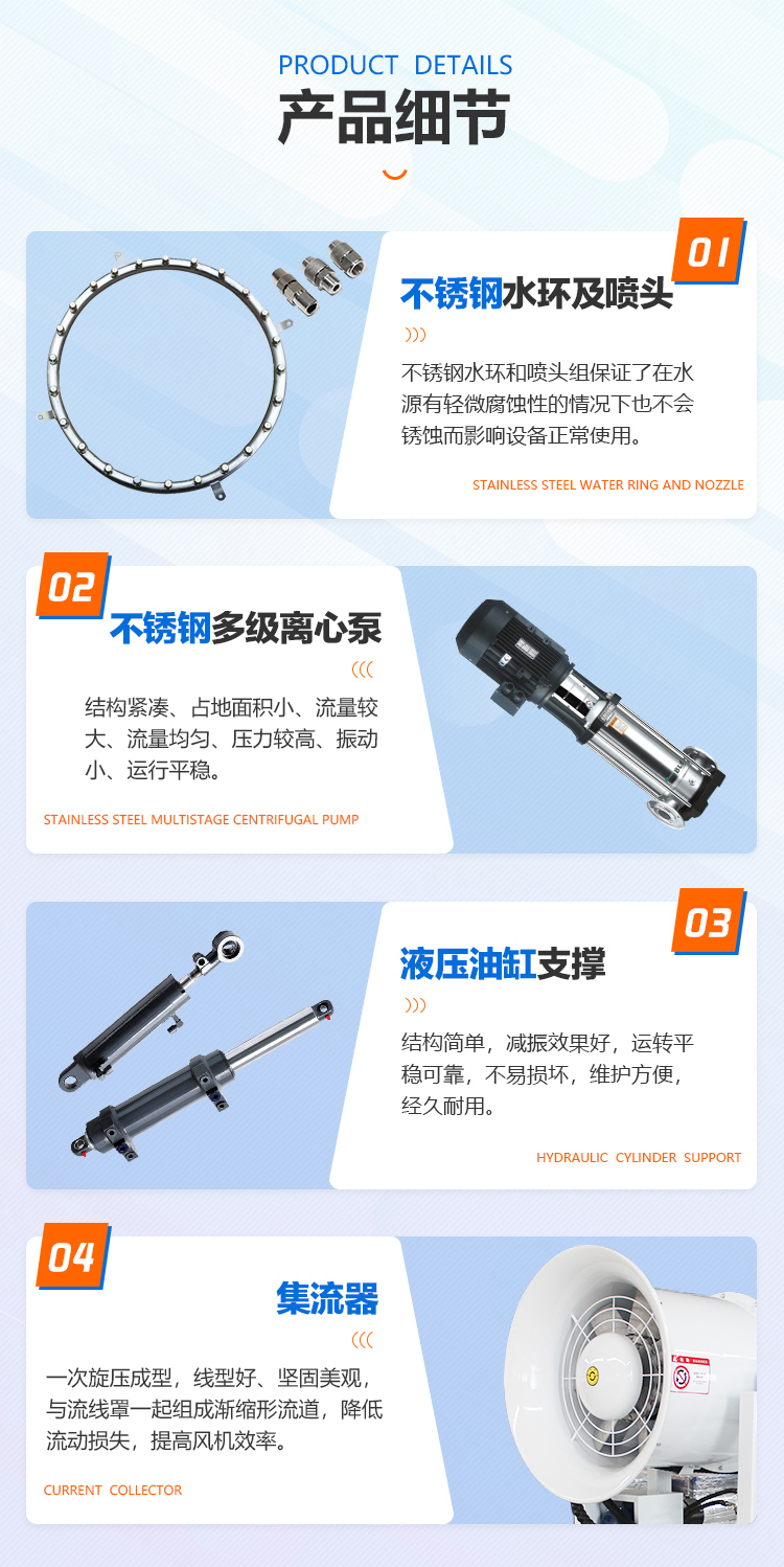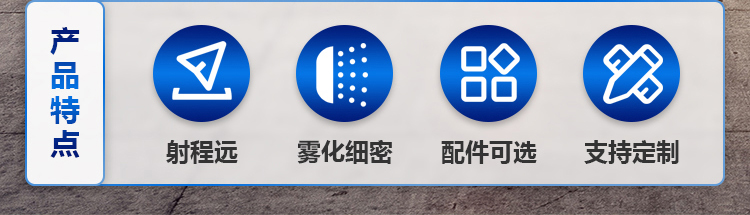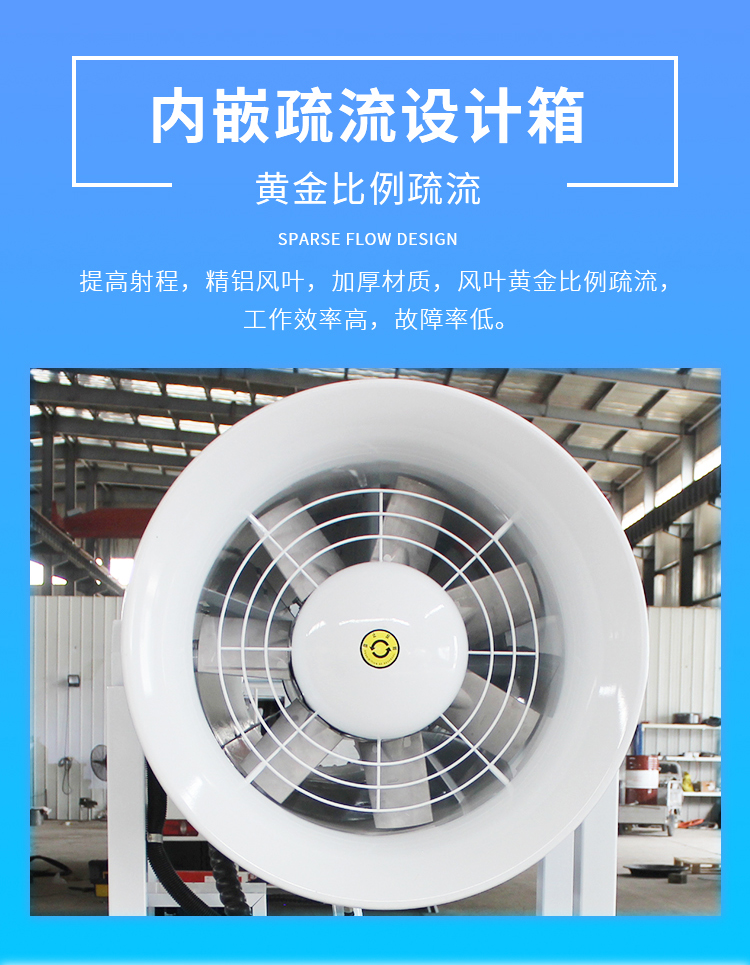 產(chǎn)品特點:化工廠降塵霧炮機采用內(nèi)嵌疏流設計箱,可提高射程,精鋁風葉,加厚材質,風葉黃金比例疏流,工作效率高,故障率低。