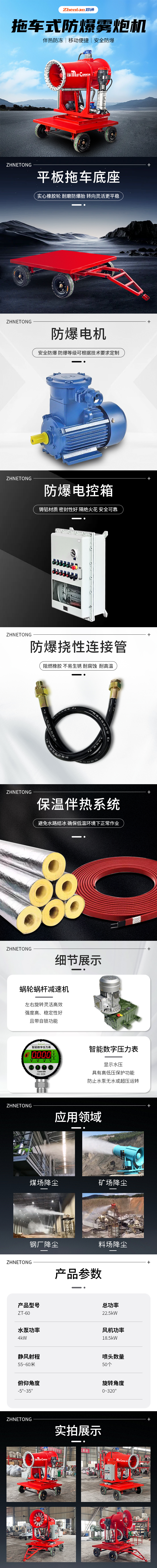 產品特點:鄭通霧炮機廠家生產的ZT-60型防爆霧炮機,拖車底盤設計,實心橡膠輪,耐磨防爆胎,轉向靈活更平穩。整體配置有防爆電機、防爆電控箱、防爆繞性連接管,為避免冬季水路結冰,還裝有保溫伴熱系統。確保低溫環境下也能正常作業。主要適用于一些大型煤場,礦場,鋼廠,料場;焦化廠等粉塵眾多且帶有易燃易爆的環境使用。15-150米射程,型號齊全,移動式,固定式,車載式,拖車式都可定制生產,大家有需要的歡迎隨時聯系徐經理:17303712097(微信同號)