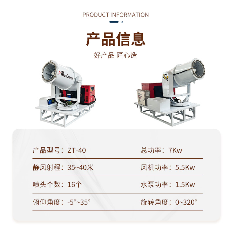 產(chǎn)品特點(diǎn):這款40型隧道養(yǎng)護(hù)大仰角霧炮機(jī),靜風(fēng)射程 35-40 米,總功率 7KW,搭載 180° 超大仰角設(shè)計,垂直向上全覆蓋噴射,輕松應(yīng)對隧道、高空、密閉高聳空間作業(yè),降塵無死角。風(fēng)筒內(nèi)置微穿孔板消音層,有效降噪 5~8 分貝,遠(yuǎn)超同行水平,作業(yè)低噪不擾民。配備靜音發(fā)電機(jī)組,電流穩(wěn)定、動力強(qiáng)勁,戶外場景也能穩(wěn)定運(yùn)行。不銹鋼電控柜防水防塵耐腐蝕,搭配蝸輪蝸桿減速機(jī)、上下鏈條控制結(jié)構(gòu),角度調(diào)節(jié)靈活高效,拉力足、穩(wěn)定性強(qiáng),0~180° 俯仰精準(zhǔn)可控。